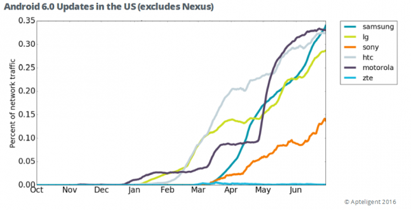 摩托羅拉在美國地區(qū)升級速度最快,在2個月內(nèi)就為Moto X Style發(fā)布了Marshmallow更新,而LG和HTC都在三個月內(nèi)發(fā)布了升級。而三星和索尼兩家公司都需要5個月左右的時間發(fā)布更新,這主要考慮到兩家的手機產(chǎn)品線比較豐富。