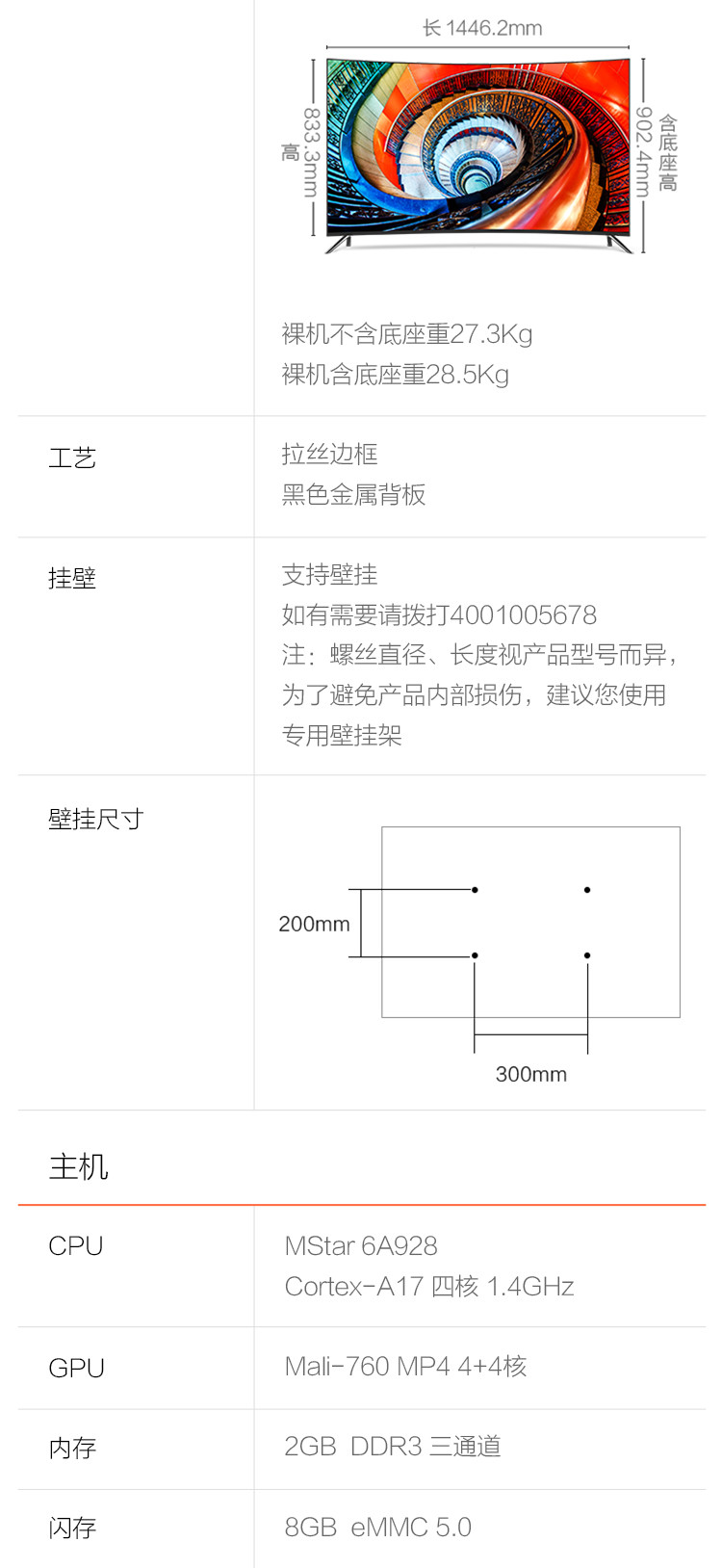 | CPU | MStar 6A928 Cortex-A17 四核 1.4GHz |